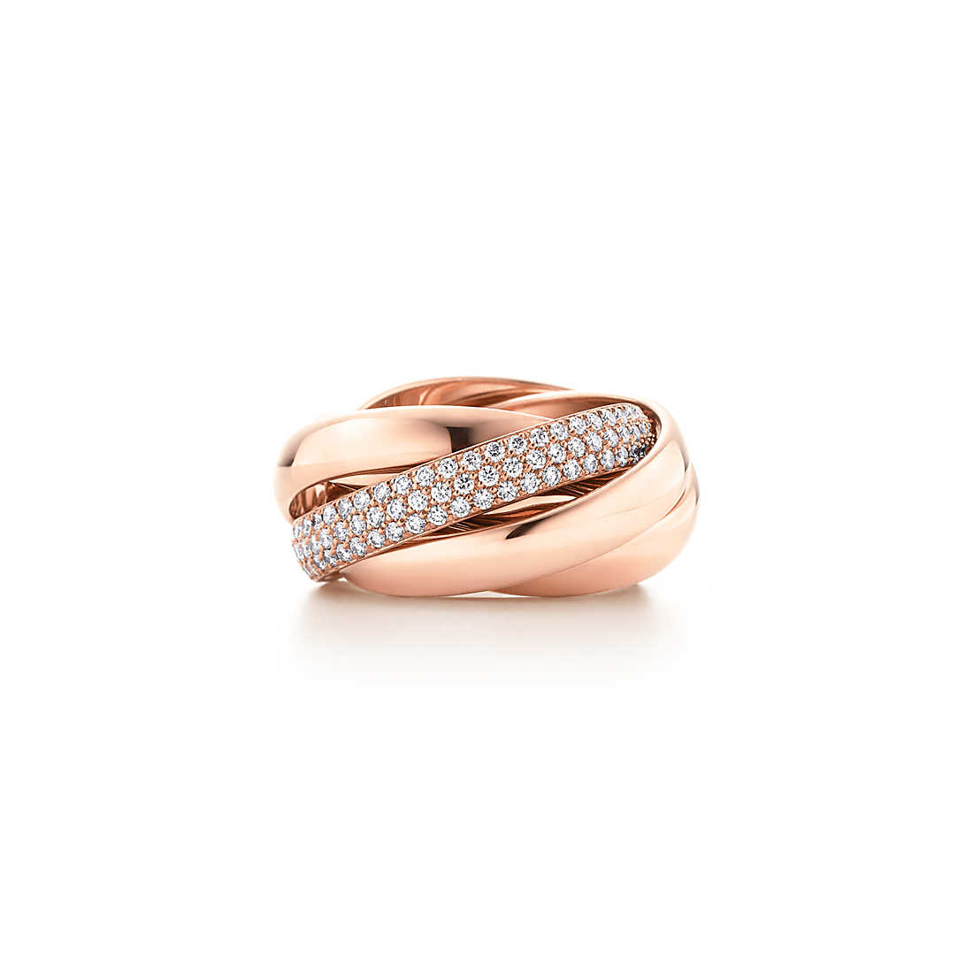 The lyrical Paloma’s Melody collectsion is crafted from interlocking bands that gently shift shape as they glide with the body, always falling back together as a whole. A single pavé diamond band highlights this ring’s fluid design.