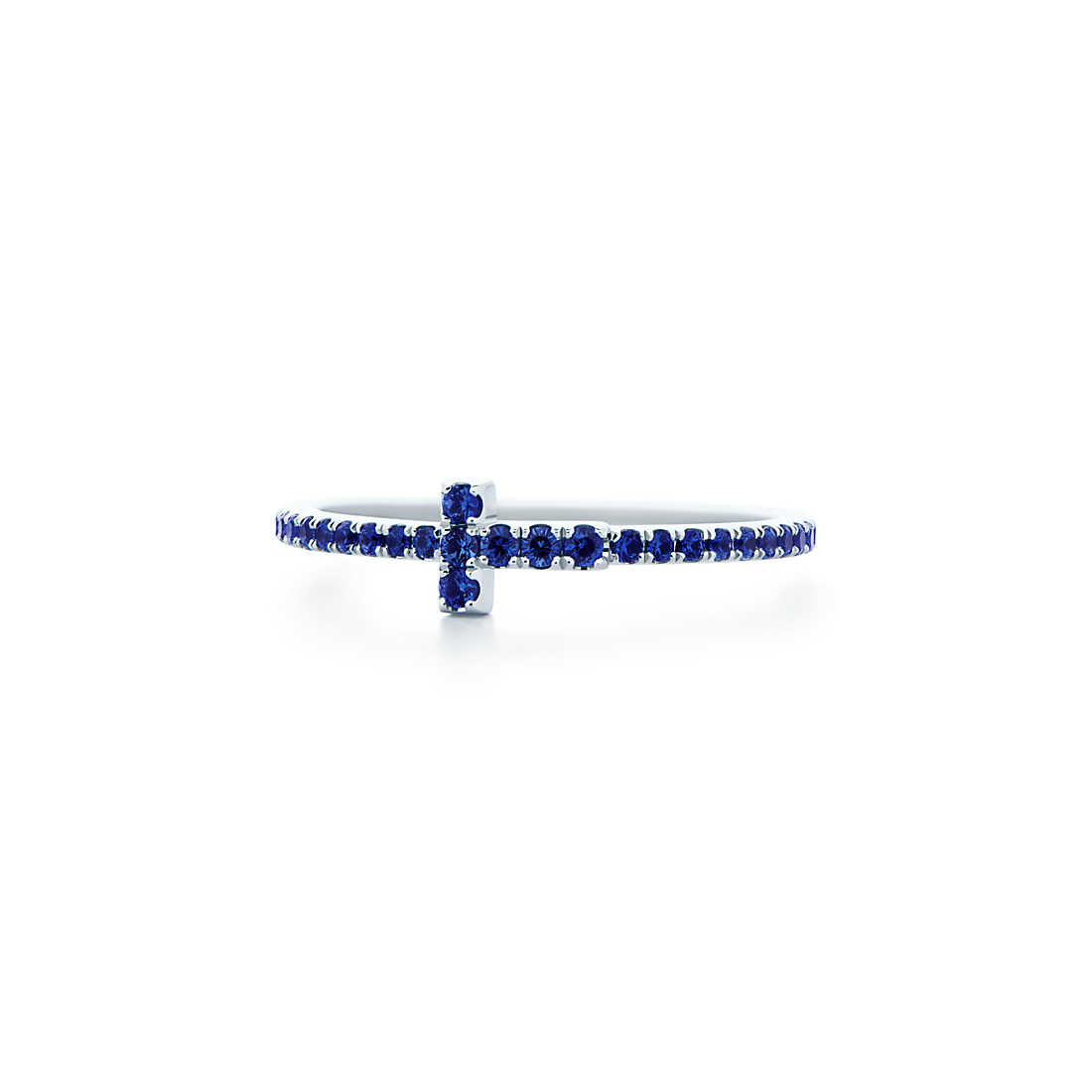 Graphic angles and clean lines blend to create the beautiful claritys of the Tiffany T collectsion. Brilliant sapphires illuminate this ring’s bold design.