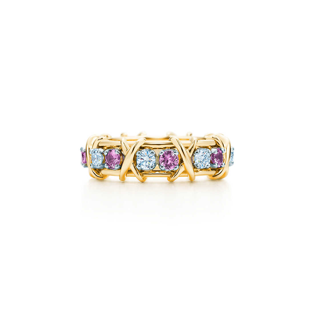 Jean Schlumberger’s visionary creations are among the world’s most intricate designs. Brilliant sapphires and diamonds alternate with golden X’s, creating this dazzling design.