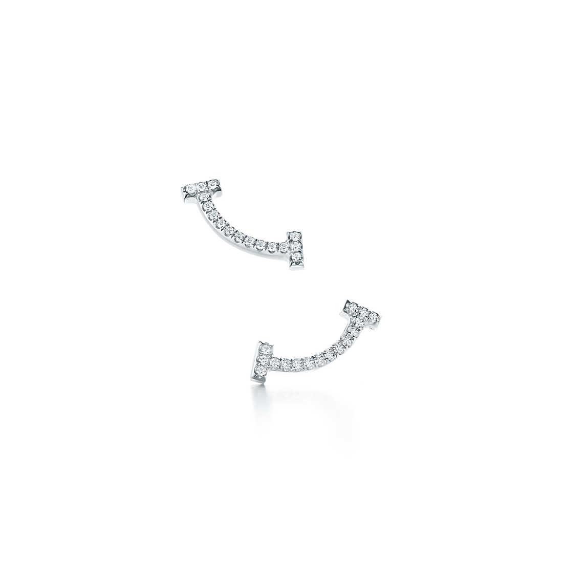 Graphic angles and clean lines blend to create the beautiful claritys of the Tiffany T collectsion. These elegant and playful earrings shine with diamonds.