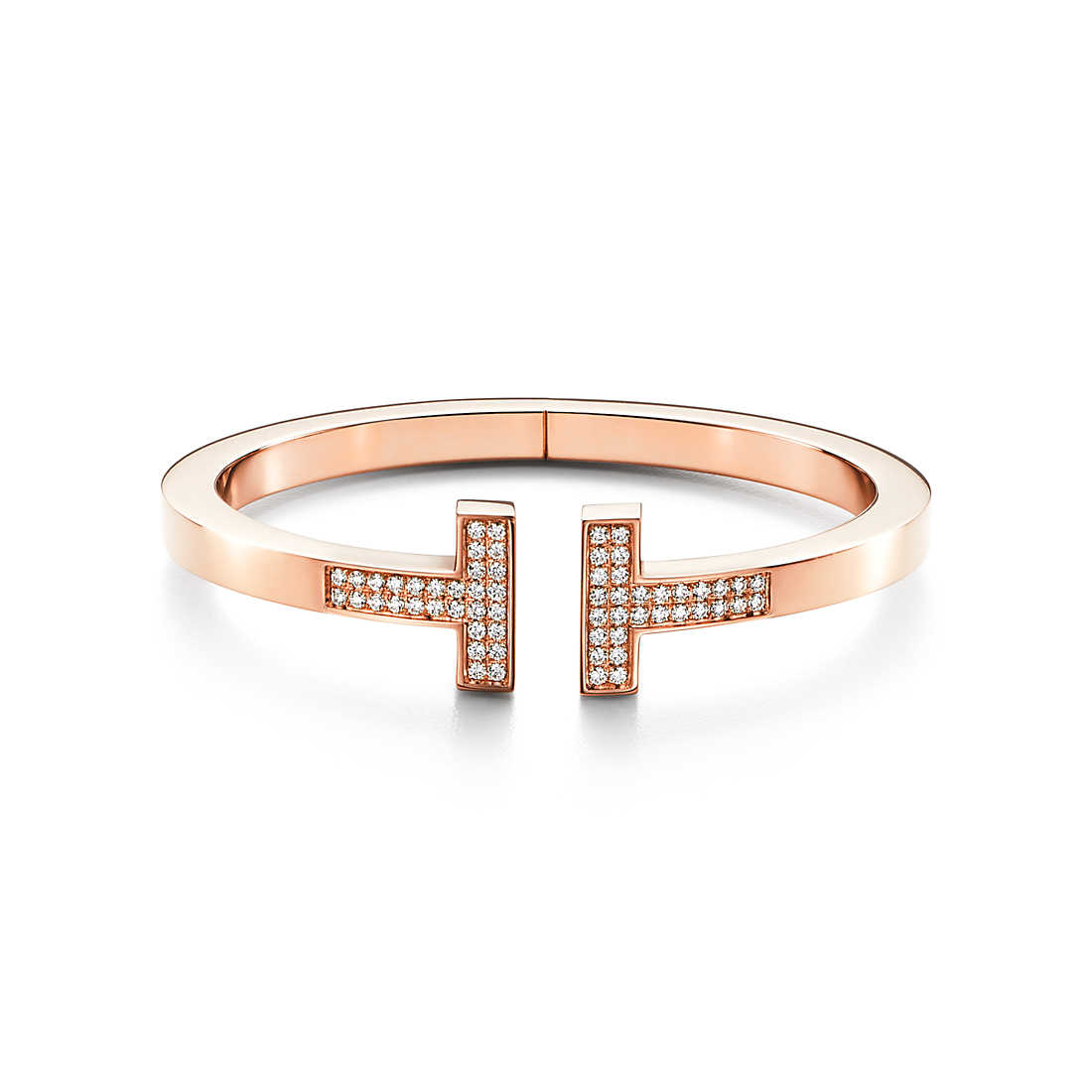 Graphic angles and clean lines blend to create the beautiful claritys of the Tiffany T collectsion. Pavé diamonds shine in this bold bracelet.