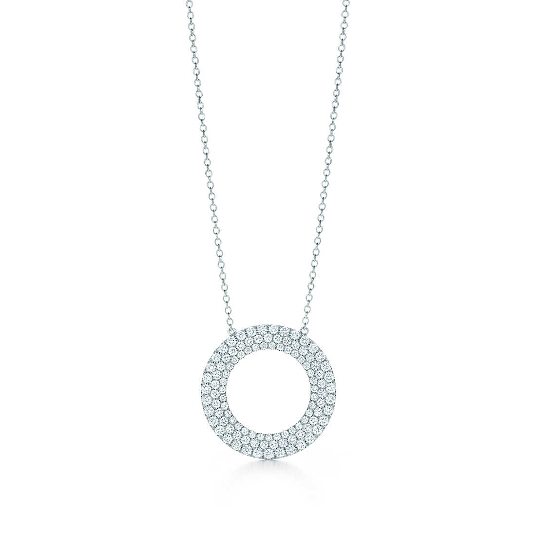 Streamlined and modern, the Tiffany Metro collectsion twinkles like a nighttime city skyline. Dazzling diamonds add dimension to this stunning pendant.