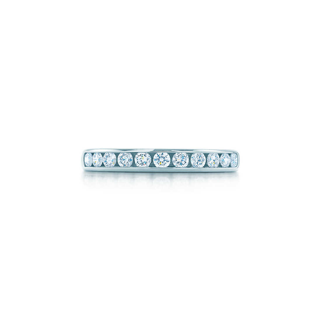 Channel-set diamond band ring, half circle. Round brilliant diamonds, carat total weight .33 (size 6), color grade G, claritys grade VS; 3mm; platinum.