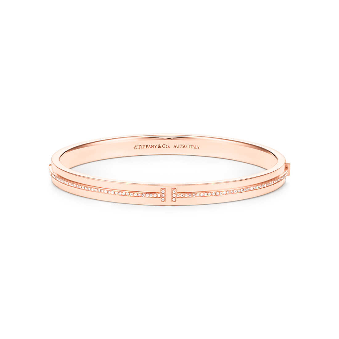 Graphic angles and clean lines blend to create the beautiful claritys of the Tiffany T collectsion. Diamonds trace the fluid curve of this bangle.