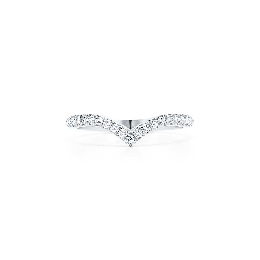 Band ring in platinum with a half circle of round brilliant diamonds. Carat total weight .17.