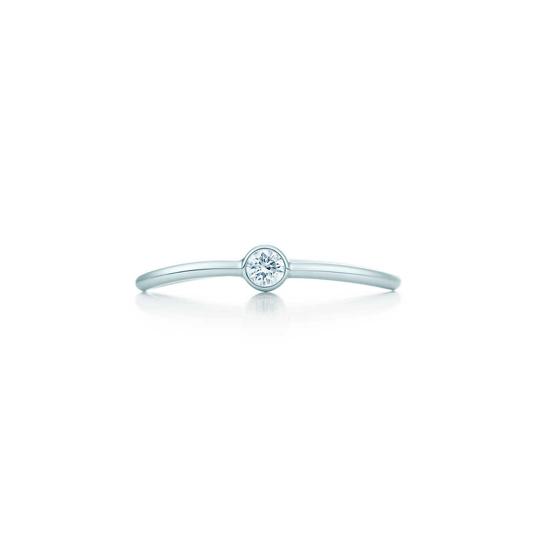 The wave seduces the eye and soothes the spirit. Ring in platinum with a round brilliant diamond. Carat weight .06. Original designs copyrighted by Elsa Peretti.