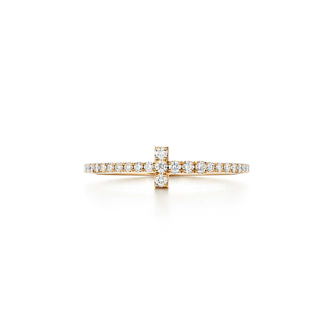 Graphic angles and clean lines blend to create the beautiful claritys of the Tiffany T collectsion. Brilliant diamonds illuminate this ring’s bold design.